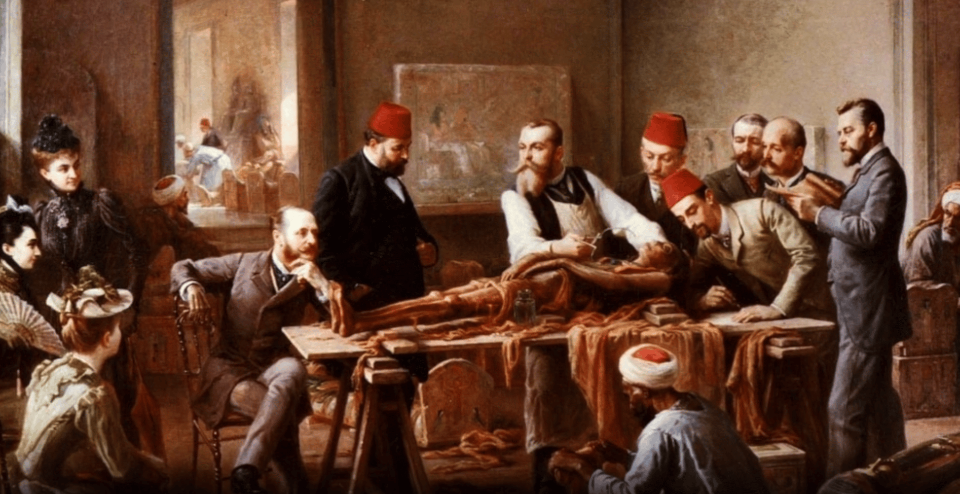 This is the story of a funeral: the funeral of a tube of paint! Warning: We'll talk about corpses and mummies in the context of history of arts (seriously), fainted hearts beware! In the mid-19th century, the British painter Edward Burne-Jones, a central figure of the Pre-Raphaelite Brotherhood, was using a popular pigment known as "Mummy Brown". He received the visit of another painter, Sir Lawrence Alma-Tadema who mentioned what it was actually made of. Burne-Jones jumped in horror when he...